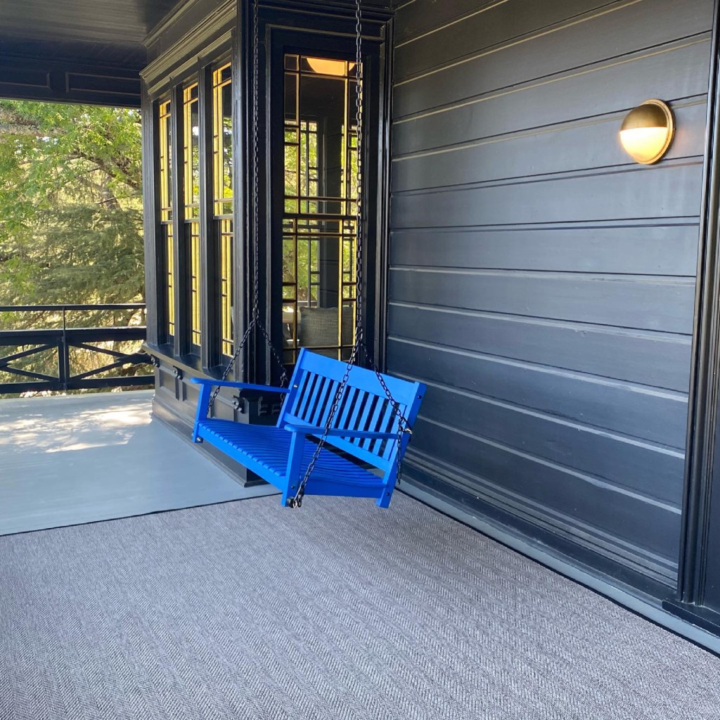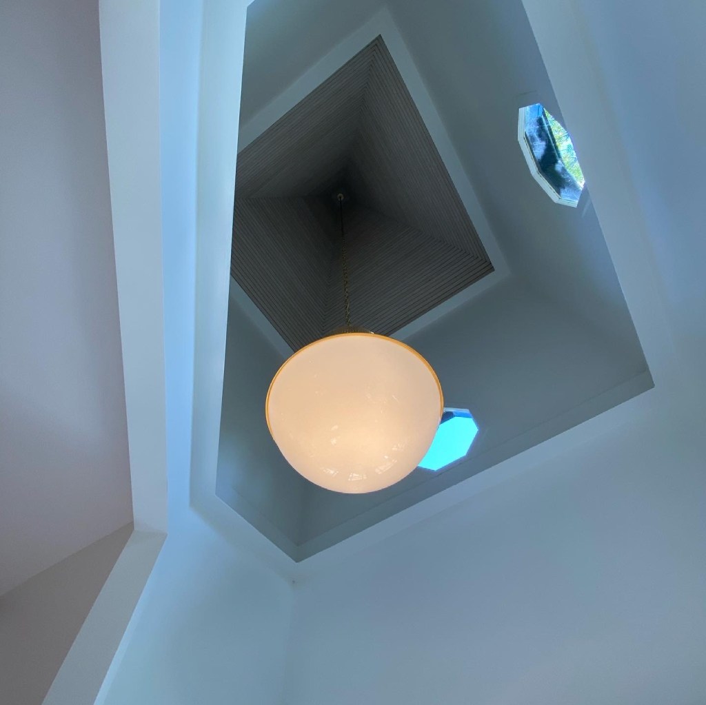 The property is set on 4 acres, one of which is under vine with Cabernet Sauvignon in front of the building. The house itself sits up on the hill and looks slightly imposing in a dark grey color. The basement has a very cool bar and entertainment room in the stone cellar. Legend has it that the space was once used as a speakeasy in the prohibition era and it has been redesigned to reflect a similar modern day feel. The main floor atmospherically integrates dark grey walls with these fantastic pops of electric blue on the outside seat and chairs and feels very artistic, with a study and a large library and entertaining room. Then as you go up through the house to the top floor you emerge into a very contemporary large room which is all white with great lighting and modern styled furnishings as well as spectacular spiral feature in the roof, that reflects the final ascent from darkness to light.