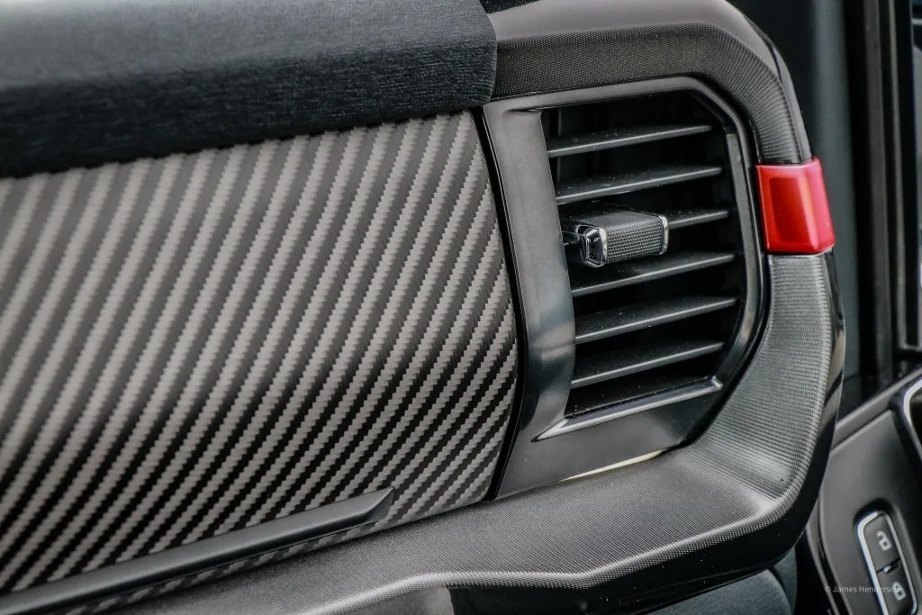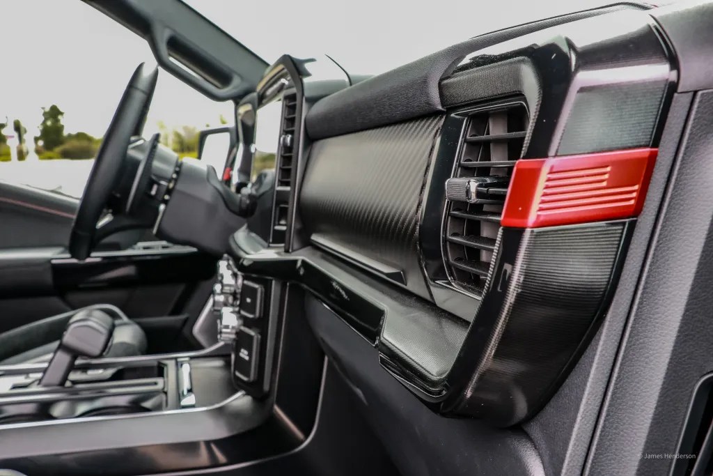 These styling cues are extended throughout the interior of the Raptor R, with Code Orange R badges on the Recaro sports seats and glove box. With its combination of black leather, Alcantara suede and genuine carbon fiber, the interior of the Raptor combines luxury, sports performance and the functionality you would expect from the F150, underscoring the purpose-built design intended to withstand the toughest and most rugged environments.